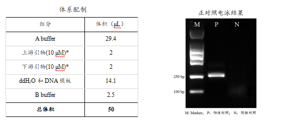 *正對照反應(yīng)單元體系配制:正對照模板加入2μL,加入4 μL正對照引物Mix(包含上/下游引物),其他組分參照體系配制。