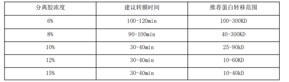 注:不推薦使用恒壓轉(zhuǎn)移,因轉(zhuǎn)膜液中離子成分較多,當(dāng)電壓在100v左右時(shí),電流會(huì)達(dá)到400mA,此時(shí)已達(dá)到普通電泳儀器zui大電流,隨著時(shí)間延長(zhǎng),可能無法達(dá)到穩(wěn)定的100v電壓。