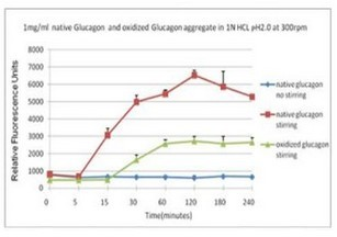 蛋氨酸被氧化后可抑制蛋白聚集藍(lán)色曲線為對(duì)照,沒有攪拌;在攪拌速度在300rpm下, 綠色曲線與紅色曲線分別表示蛋氨酸被氧化后的蛋白聚集情況。使用本產(chǎn)品檢測(cè)后,可知蛋氨酸被氧化后可抑制蛋白聚集。