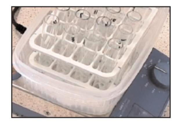 3.蓋緊試管蓋子,用渦旋振蕩器混勻,臥式放入振蕩水浴器,與運(yùn)動方向平行。