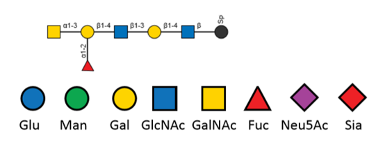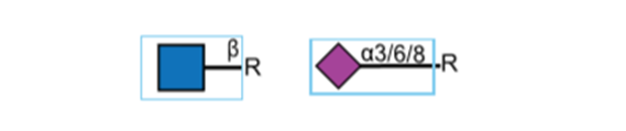 WGA的受體糖是N-acetylglucosamine,多與二聚體和三聚體結(jié)合。WGA可與含末端N-acetylglucosamine 或 chitobiose結(jié)合,這些結(jié)構(gòu)是許多血清和膜糖蛋白的共同結(jié)構(gòu)。細菌細胞壁內(nèi)的肽聚糖、幾丁質(zhì)、軟骨粘多糖及糖脂均可跟WGA結(jié)合?;钚?/span>WGA通過唾液酸殘基與部分糖蛋白相互作用。