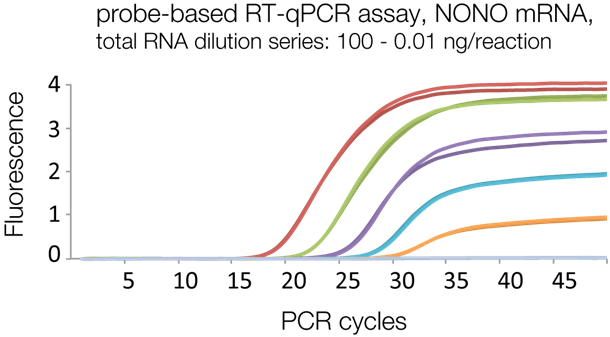 RT-PCR活性:已對 Volcano3G RT-PCR Mix進行了成功的RT-PCR性能測試。在實時PCR循環(huán)儀中從人總RNA提取物中擴增出151 bp片段(HPRT1 mRNA),并可視化為單個擴增產(chǎn)物。