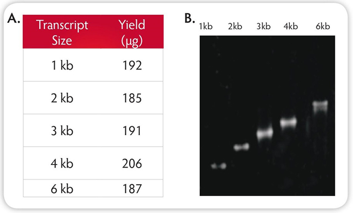 高產(chǎn):從1μg DNA模板生產(chǎn)超過180μg RNA;