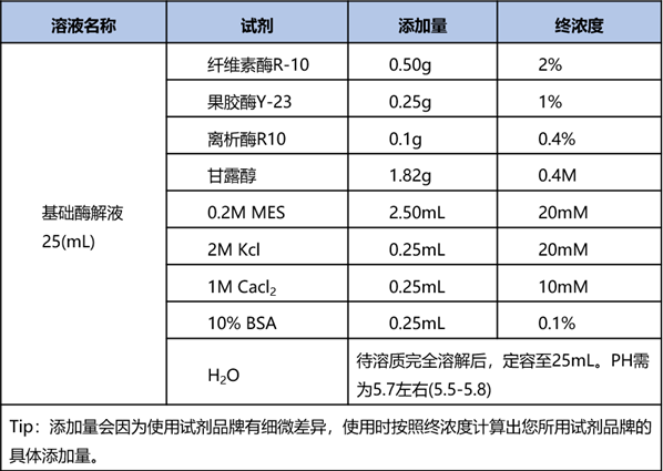 根部組織取材優(yōu)先選取狀態(tài)飽滿、水嫩的根部進行實驗;莖部組織取材時需要注意剝?nèi)ビ许g性的外表皮后進行實驗。實驗摸索前期組織量要盡可能的多,推薦鮮重 0.25-2 g 的組織進行酶解實驗。