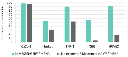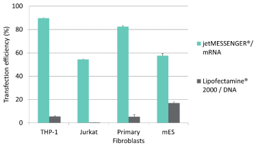 jetMESSENGER? 在難轉(zhuǎn)染細(xì)胞中非常高效,相比于其他mRNA轉(zhuǎn)染試劑