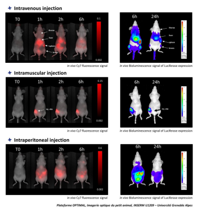Fig. mRNA / in vivo-jetRNA?復(fù)合物通過(guò)各種途徑注射小鼠后的生物分布
