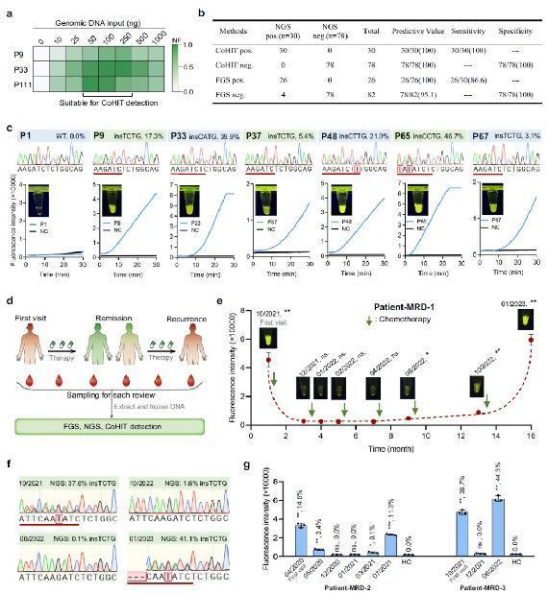 圖3 | 使用CoHIT系統(tǒng)檢測臨床樣本和MRD