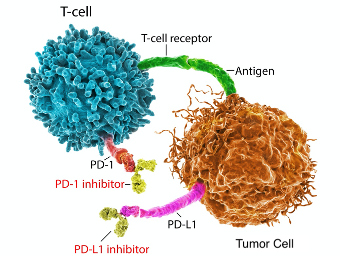 ●通過用阻斷PD-L1和它的受體PD-1之間的相互作用的抗體治療,腫瘤生長可以暫時被抑制。
